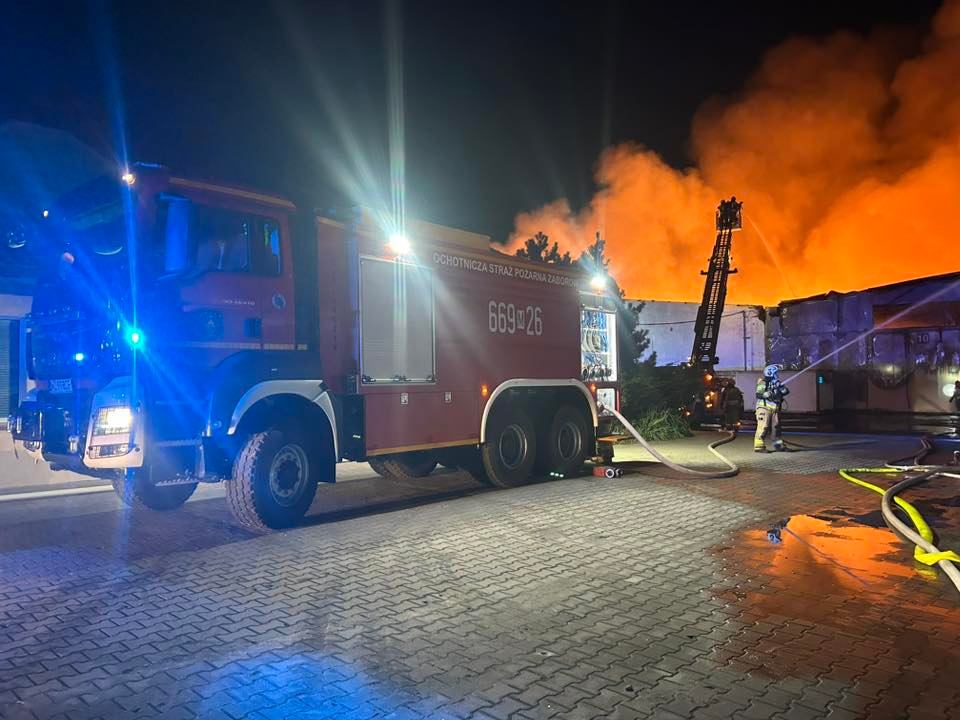 W nocy 20 kwietnia na terenie powiatu warszawskiego zachodniego doszło do groźnego pożaru w jednym z zakładów produkcyjnych. Płomienie bardzo szybko objęły dużą część zakładu, a gęsty dym był widoczny z wielu kilometrów. Sytuację dodatkowo komplikowały niesprzyjające warunki pogodowe, które znacznie utrudniały działania gaśnicze oraz koordynację służb.